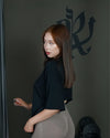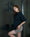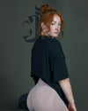 Built with a structured drop-shoulder and full-coverage crew neckline, its oversized architecture and sculpted inverted U-cut at the back, provides a clean and confident drape.