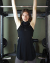 A High-Neck Tank piece featuring a full double-layered construction delivering a unique engineered silhouette.
